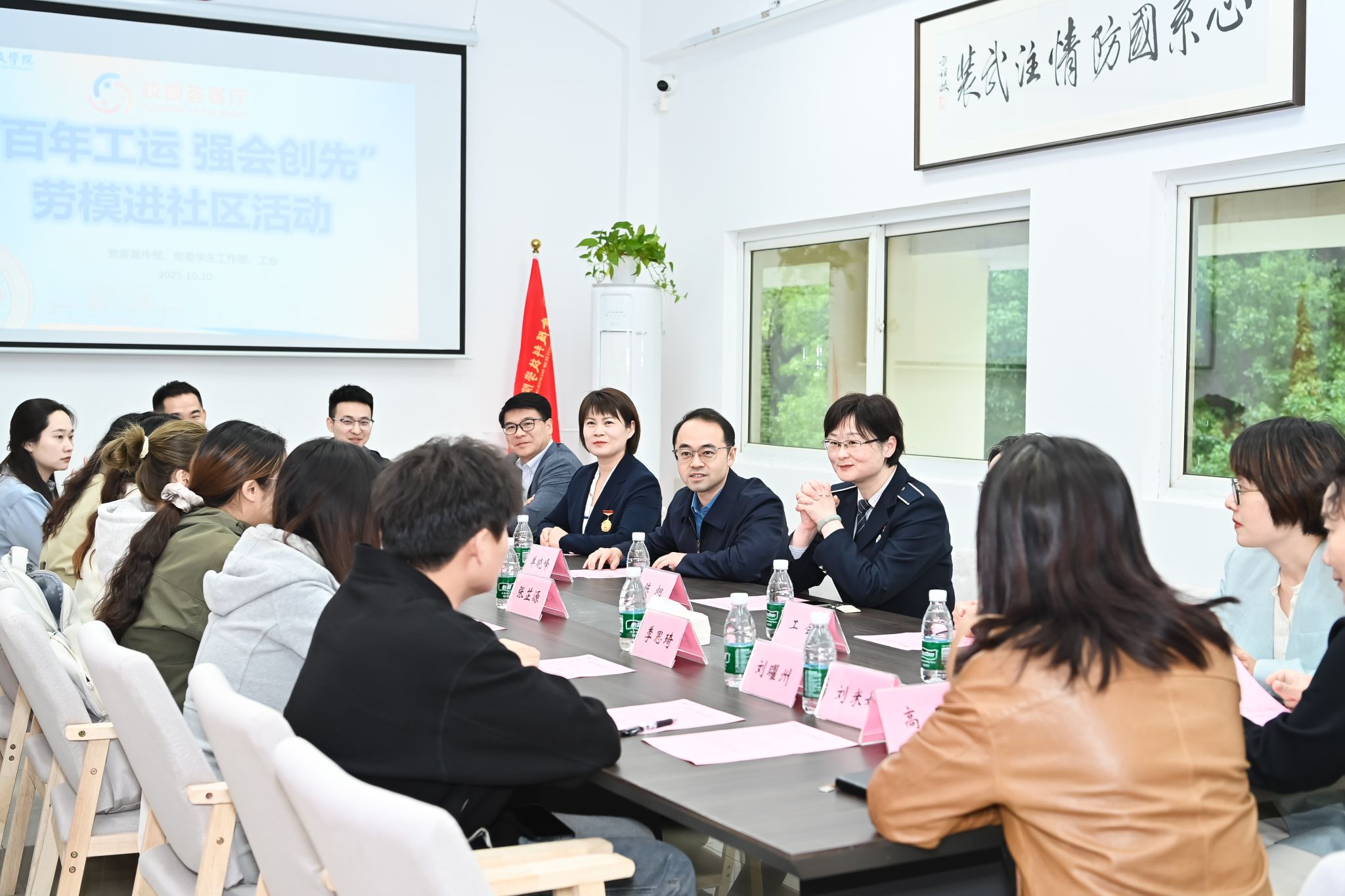随后,陈炯、王利两位劳模做客“一站式”学生社区“校园荟客厅”,与青年学子近距离对话。